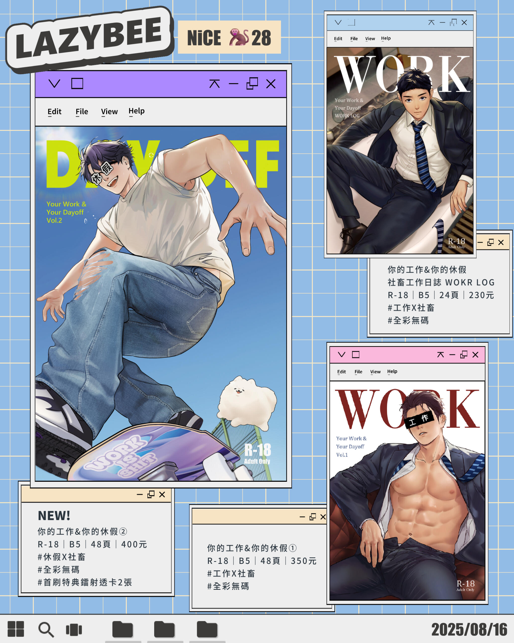 ⚠️關於新刊重要內容 ①此次新刊結帳限購3本,購買前請準備好證件,不販售給未成年者。 首刷本皆有贈限量特典工作&休假鐳射透卡兩張(三寸小卡尺寸),透卡僅有底部有膜需撕除使用。 ②新刊通販預購會在場次後,通販部分的鐳射卡特典為限量;電子書版會在8/20上架至BOOK☆WALKER(新刊電子書版定價會和第一本相同)。✨其他 ①這場不接簽名、簽繪。 ②現場可使用LINEpay ,但若碰到攤位前出現人潮僅限現金付款。 ③商品數量依現場為主。